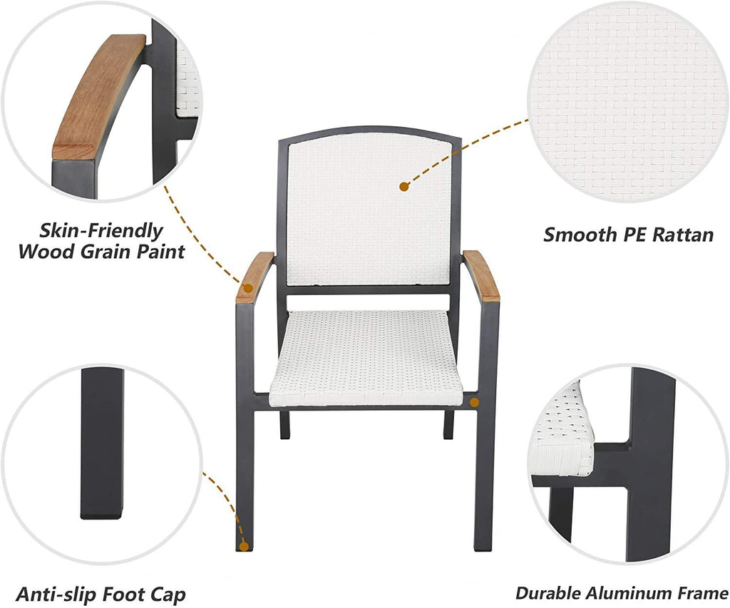 Hand-woven PE rattan: PE rattan is UV-resistant, waterproof, corrosion-resistant, non-fading, and has a long service life. Faux woven rattan is tightly bound to the frame, and soft cushions and armrests add to your comfort