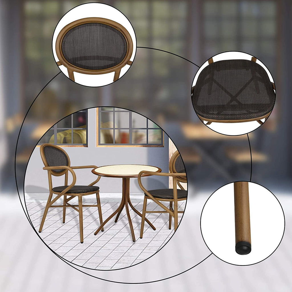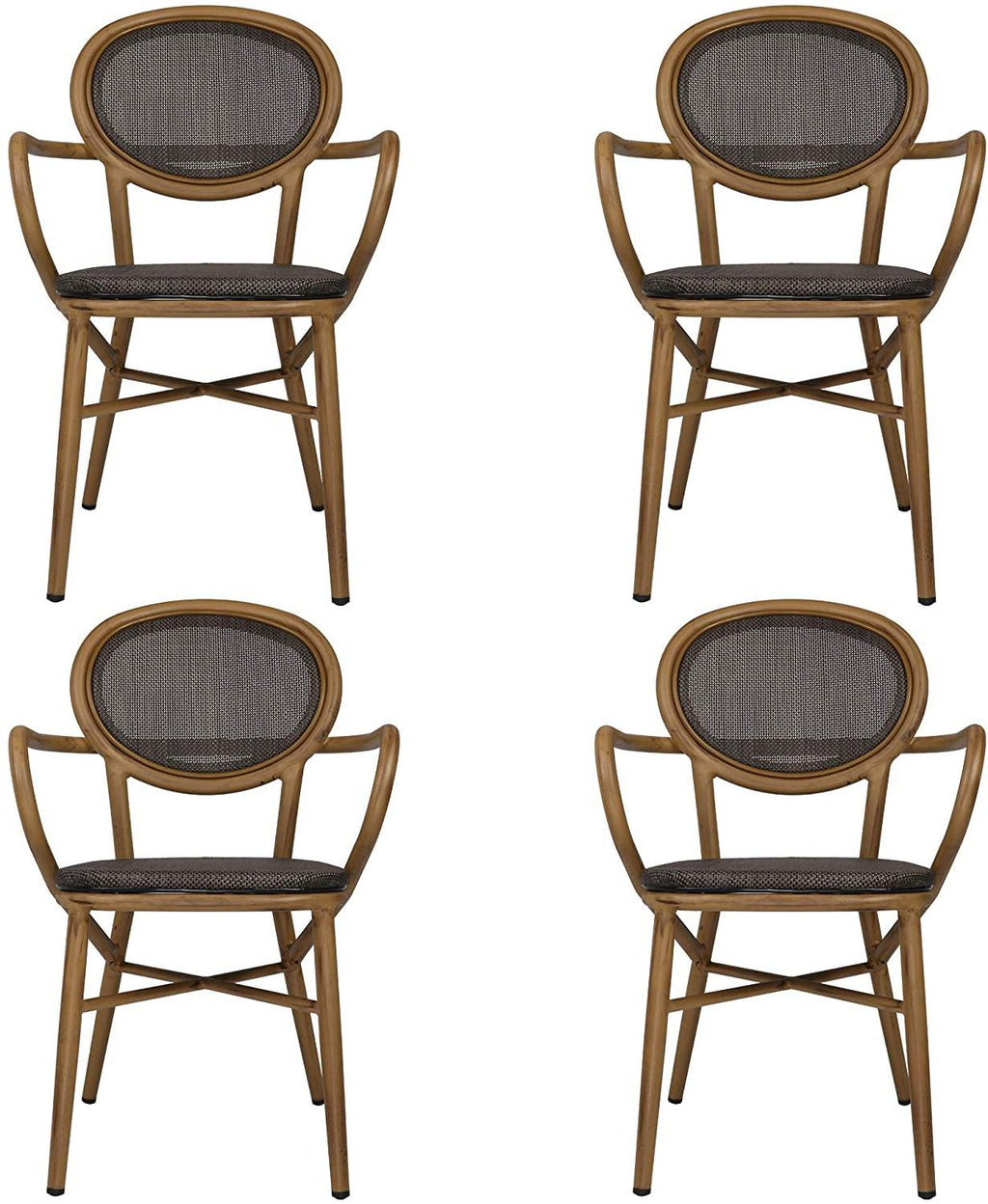 A rattan design in the back and seat of this rustic-style dining chair with a natural finish provides a contemporary and transitional design perfect for any decor. The solid Aluminum frame and ease of care help keep it looking new through the daily wear and tear of home or office life.
