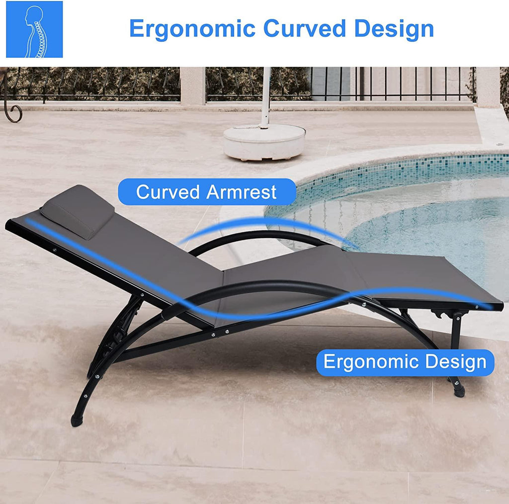 Ergonomic Design: Curved backrest design makes you lie more comfortable, reducing your muscle tension and stress.And the foam armest can keep your arms from being hurt by steel pipes.This chaise lounge chair is a good choice to take out and enjoy your sunbathing time.