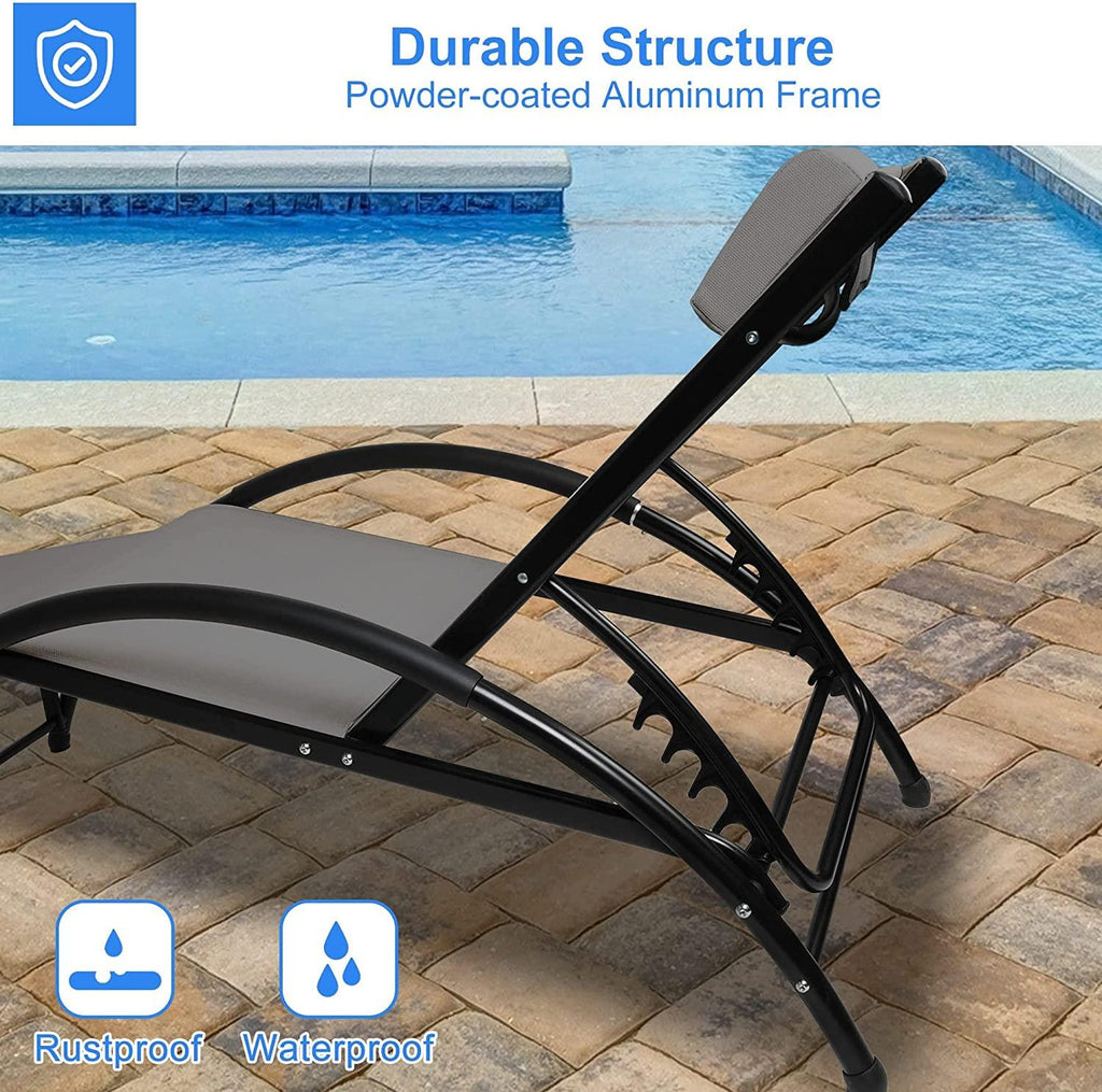 Durable &Safe Design: The tanning reclining Chair is constructed by powder-coated steel frame. This folding recliner is rustproof,waterproof and sturdy enough to hold up to 350lbs.And the non-slip foot lets you lie freely.