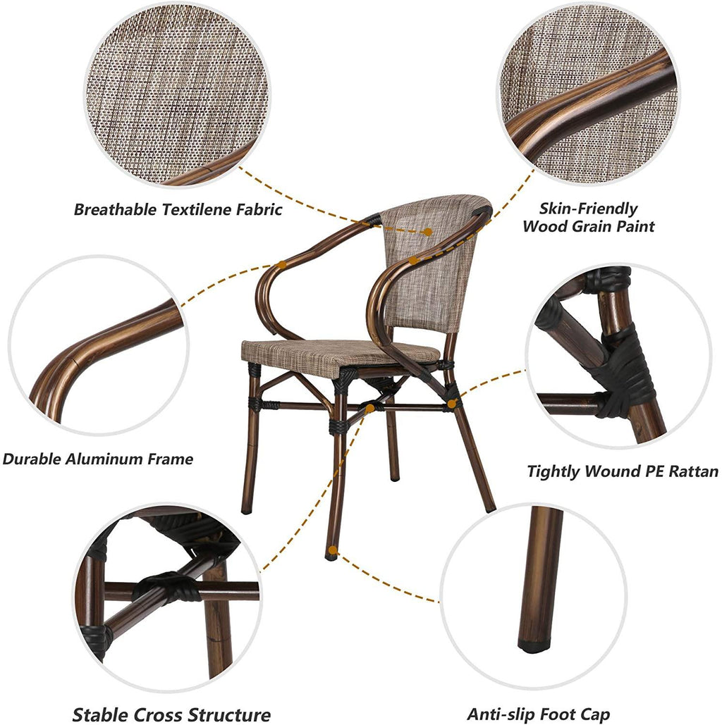 - Outdoor dining chair is good for outdoor cafe and restaurant, also you can invite your friends and families have a afternoon tea party, eating dinner at your garden when the weather is super comfortable.