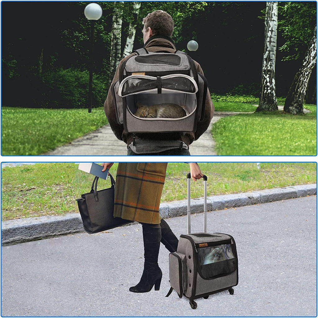 3 Different Ways to Carry: With shoulder straps (with sponge pad, does not hurt the shoulder), removable foldable wheeled luggage cart and sturdy hand-carry. You can choose to carry this airline approved pet carrier over the shoulder, handheld or as a luggage cart to pull. It can also be folded up for easy storage when not in use.