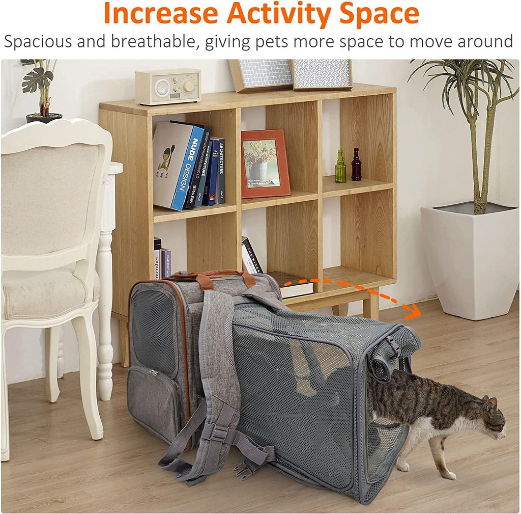 Multiple Ways to Use: This retractable and collapsible pet carrier gives your pet more space to rest, so your pet can walk around more comfortably and with less anxiety, perfect for outdoor use. You can hand-carry or choose to carry your pet backpack on both shoulders and go shopping, picnics, vet visits, walks or trips with your pet, etc.
