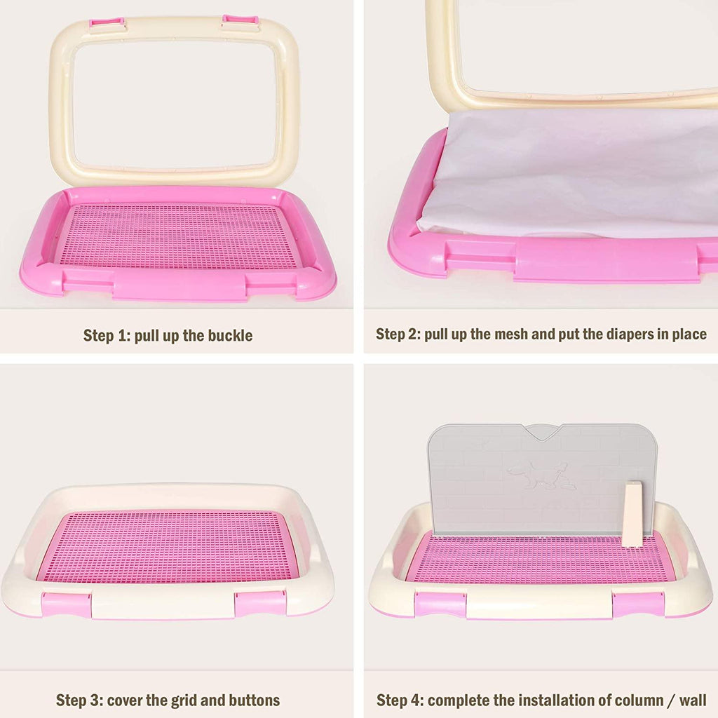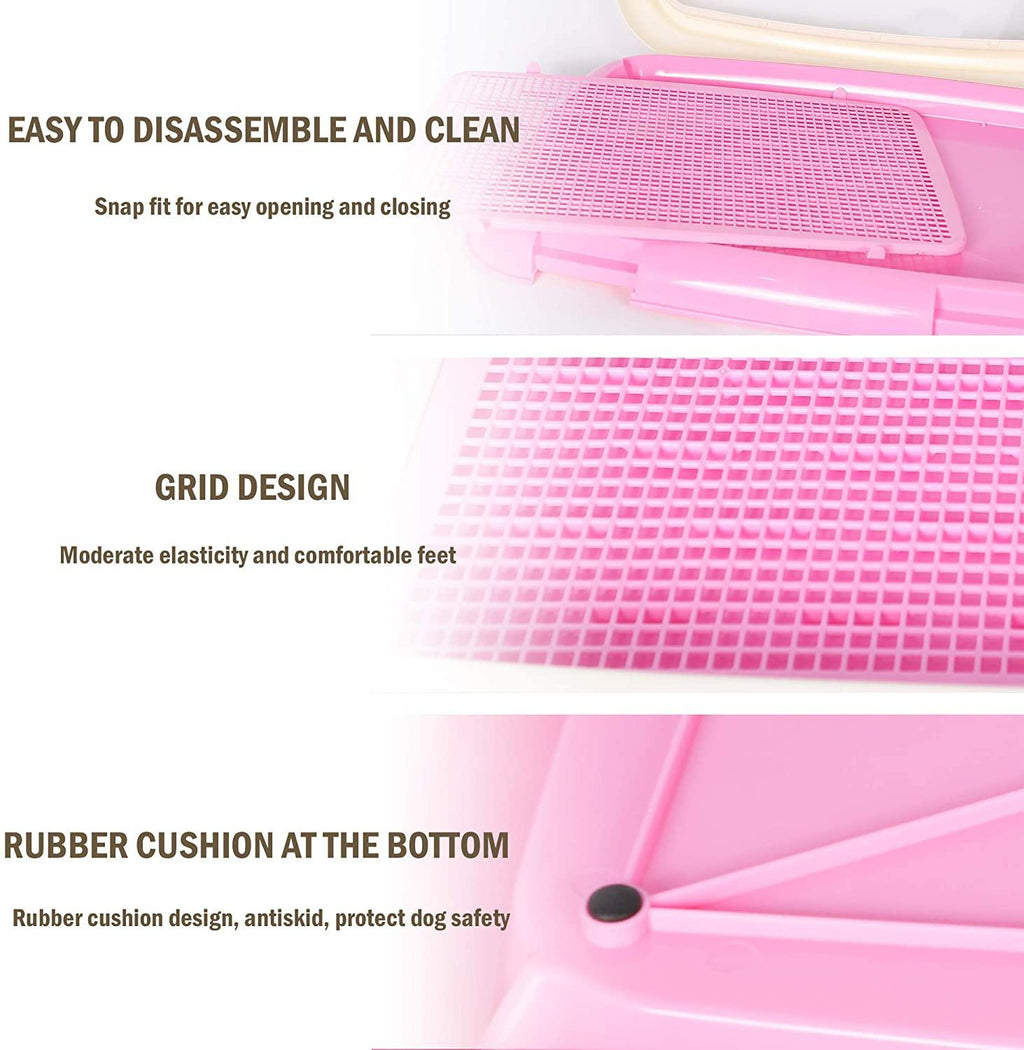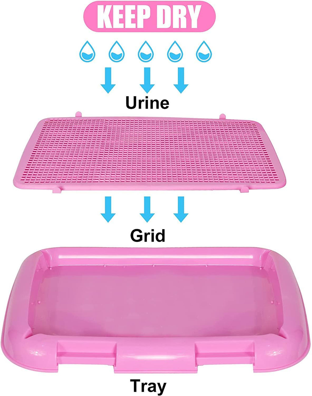 - Easy to clean: This dog potty tray is made of sturdy PP material, also the removable mesh of grid is very easy to clean. Just rinse it with water.