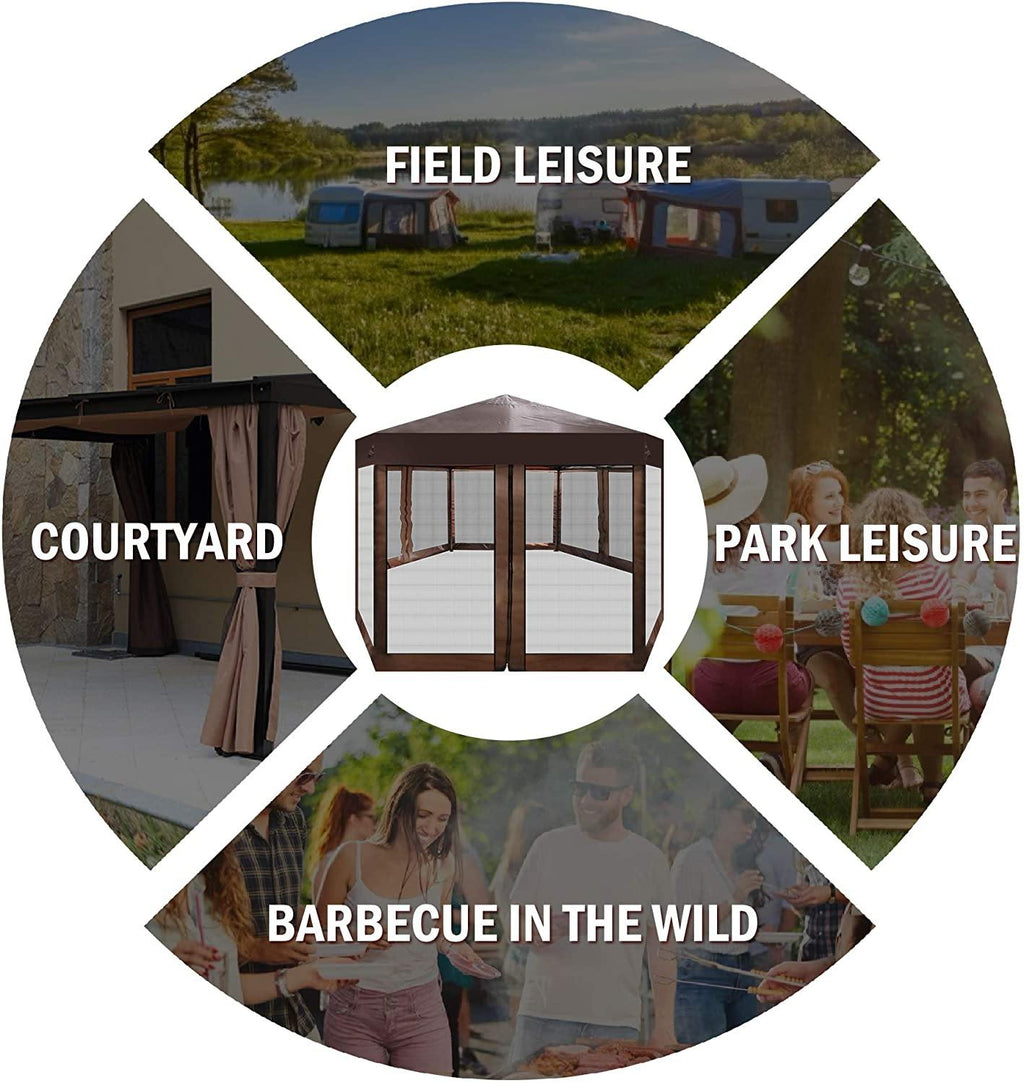 Camping Shelter: This canopy tent will provide a cool spot when you camping ,hiking or have a backyard party; Allows you to enjoy the charm of nature while being protected from sunlight and insects.