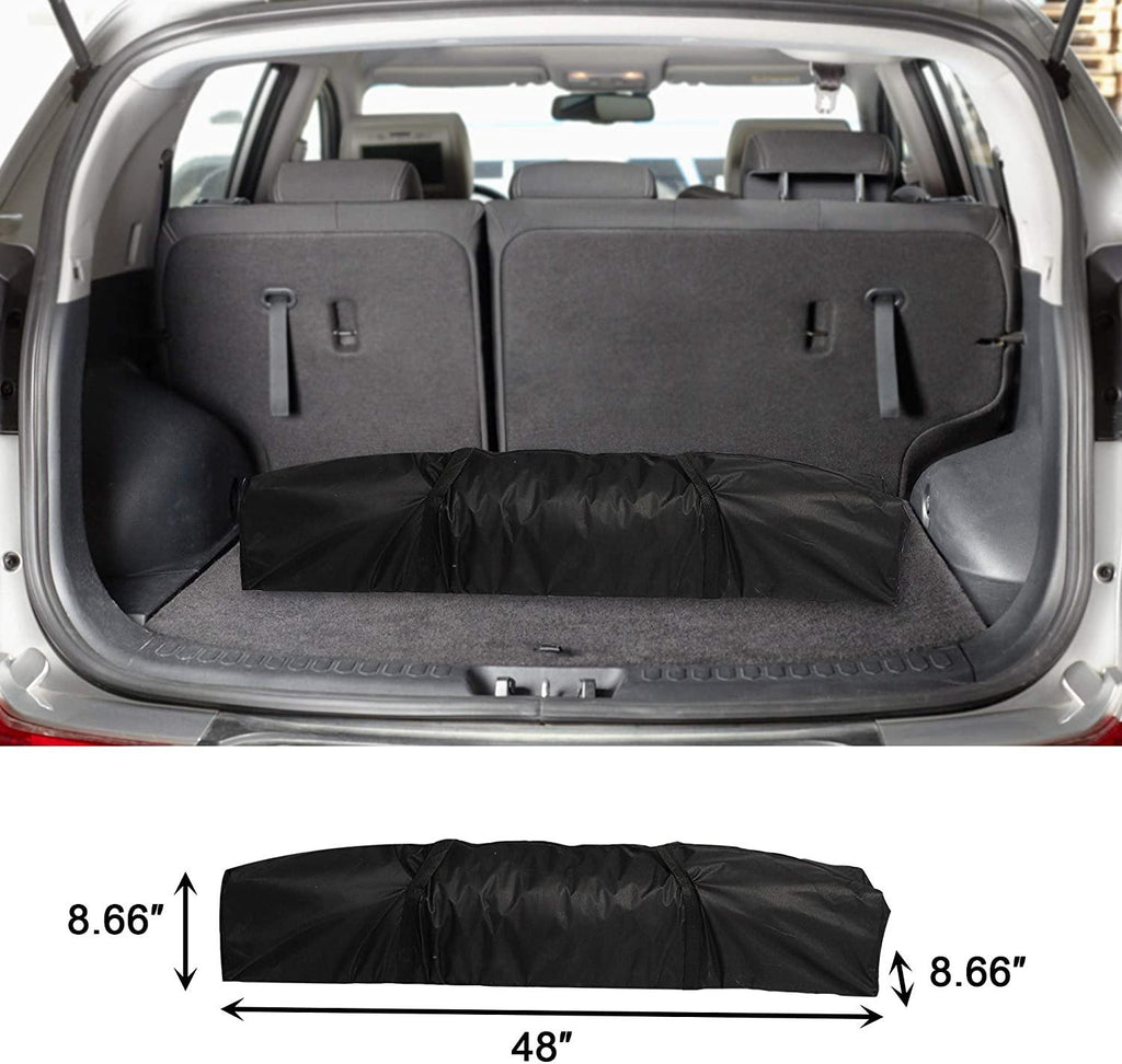 Carry Bag: fold up size: 48"x 8.66"; Come with a carry bag, so it will be very convenient to carry it and storage; package included 10 FT Rope x 4, Ground Stakes x 8.