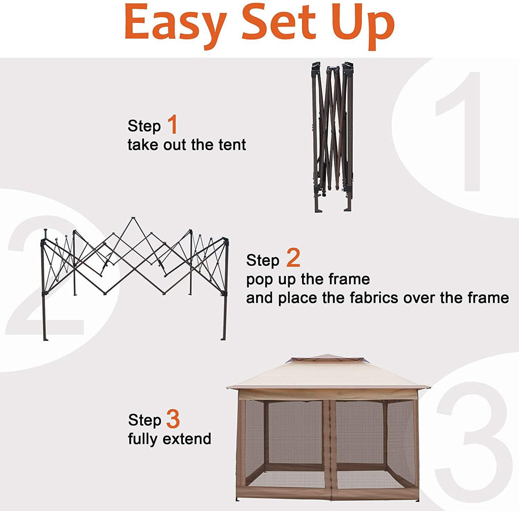 Easy to Set Up: Only need 3 steps, pop up the frame then place the fabrics over the frame, fully extend and adjust height, you can easily set up in minutes; It would be great if a friend installed with you together.