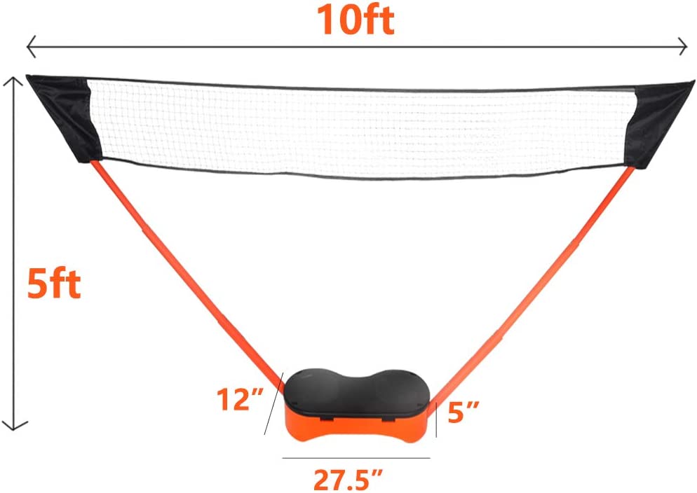 - 10 ft net, 2 steel badminton rackets, 2 badminton shuttlecocks, storage box base with 2 arms.