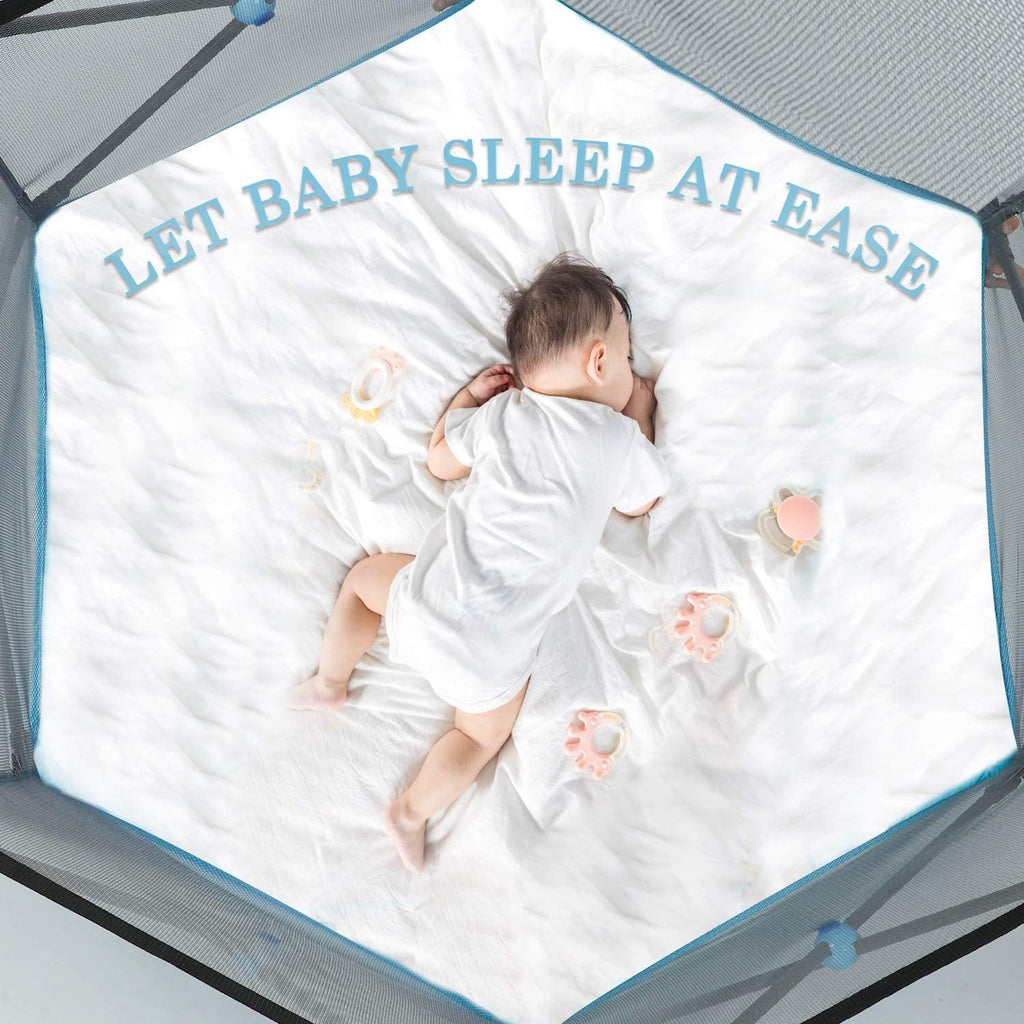 - Sturdy Play Space - Hexagon structure make this playpens stable when your little one push the mesh side;High quality metal tube will add a great support for this play area;Let your little one have a happy time in this safety area.