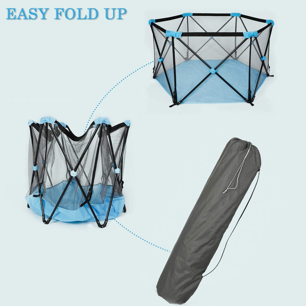 - Wonderful Play Area -55in(L)x 26in (H),1.3 m²playing area is big enough for baby or child to nap or play right away; Come with a carry bag convenience to use in the park, garden, beach; Let your little one enjoy outdoor fresh air and beautiful scenery