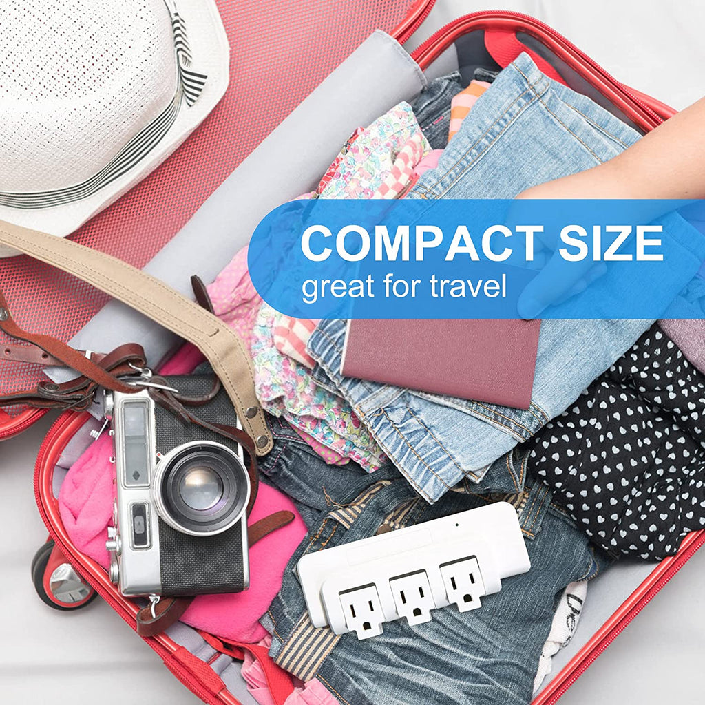 Compact Size: 3 AC outlets (15A 125V 1875W),allows you to quickly charge electrical devices at the same time.The small size is easy to carry, and maximum space-saving at home or in your travel bag. especially suitable for library, student dormitory and travel.