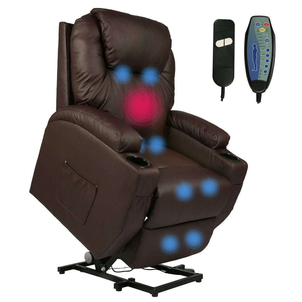 - This adjustable lift electric recliner chair comes with 4 areas of massage (shin, thigh, lumbar, head) and 5 modes (pulse, press, wave, auto, normal), meeting all your demands for different massages.