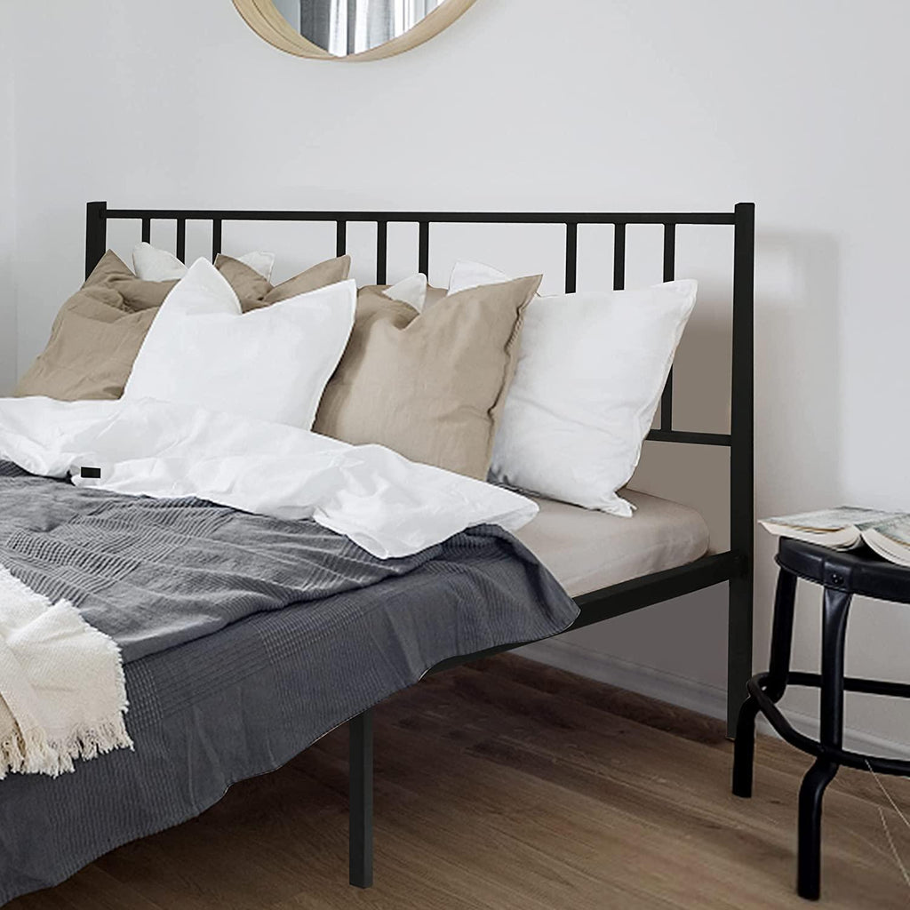 Bosonshop Metal Bed Frame Queen Size with Upholstered Headboard protects your sweet dream. Contemporary design bed frame with upholstered headboard and footboard creates a sweet night sleep for you. Iron slat support provides structure and silence. Moreover, No box spring needed for convenience.