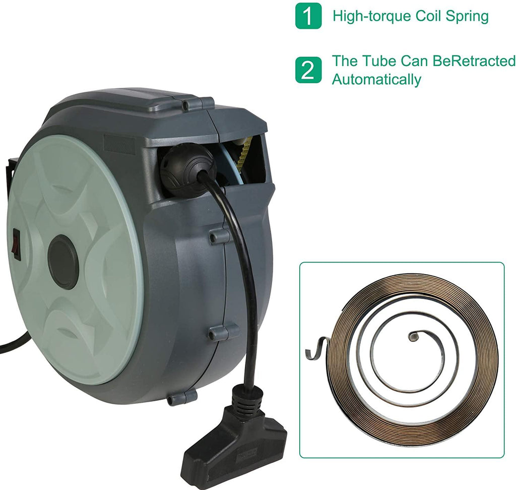 With a high-torque coil spring design, the cable retracts automatically. It can also be locked at any length by pulling. To retract, simply pull the cable out a bit and slowly guide it back to the reel.
