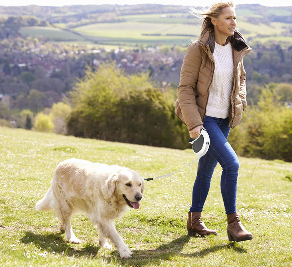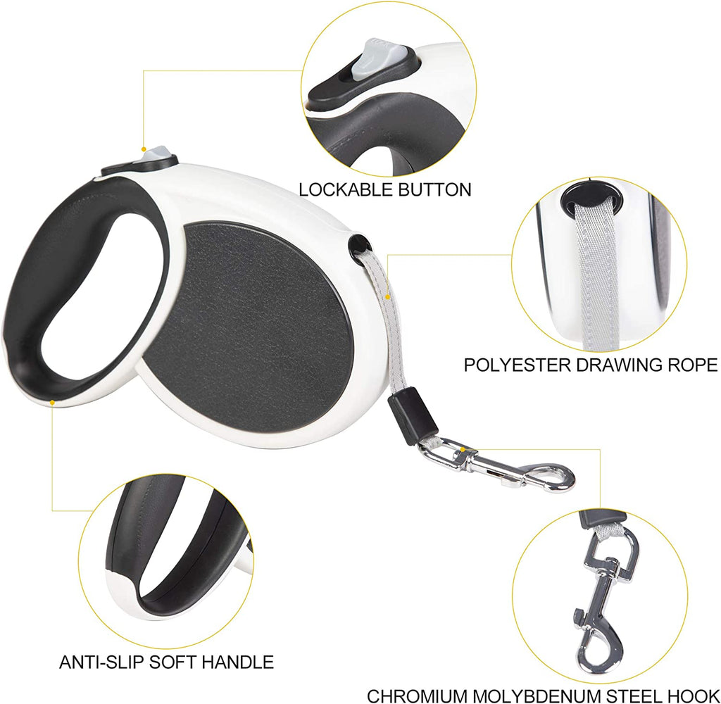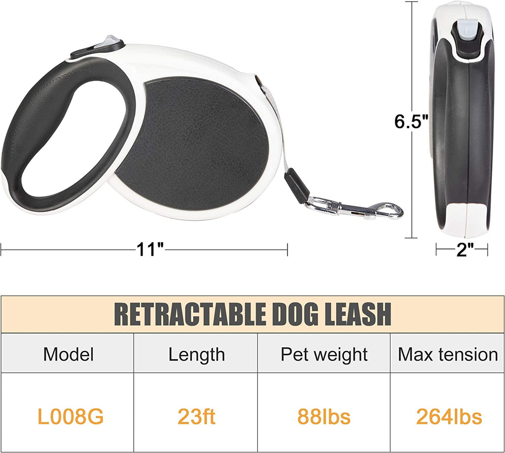 The Retractable Dog Leash Heavy Duty Pet Walking Leash with 23ft Tangle Free Tape is a great option for dogs of all sizes. It is made from durable nylon tape that is tangle-free, and it has a sturdy metal clip that can be attached to your dog's collar or harness. The leash also has a comfortable grip handle that makes it easy to hold, even when your dog is pulling.