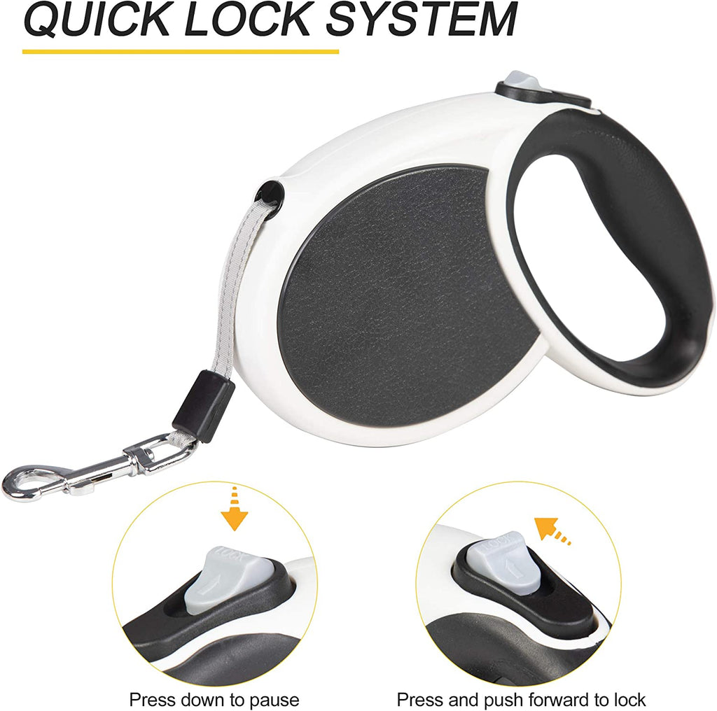 One-Hand Operation: Walk your dog freely in open area with the reliable lock by one hand braking and release, and adjust it to a comfortable length with ease. One Button Brake & Pause & Lock