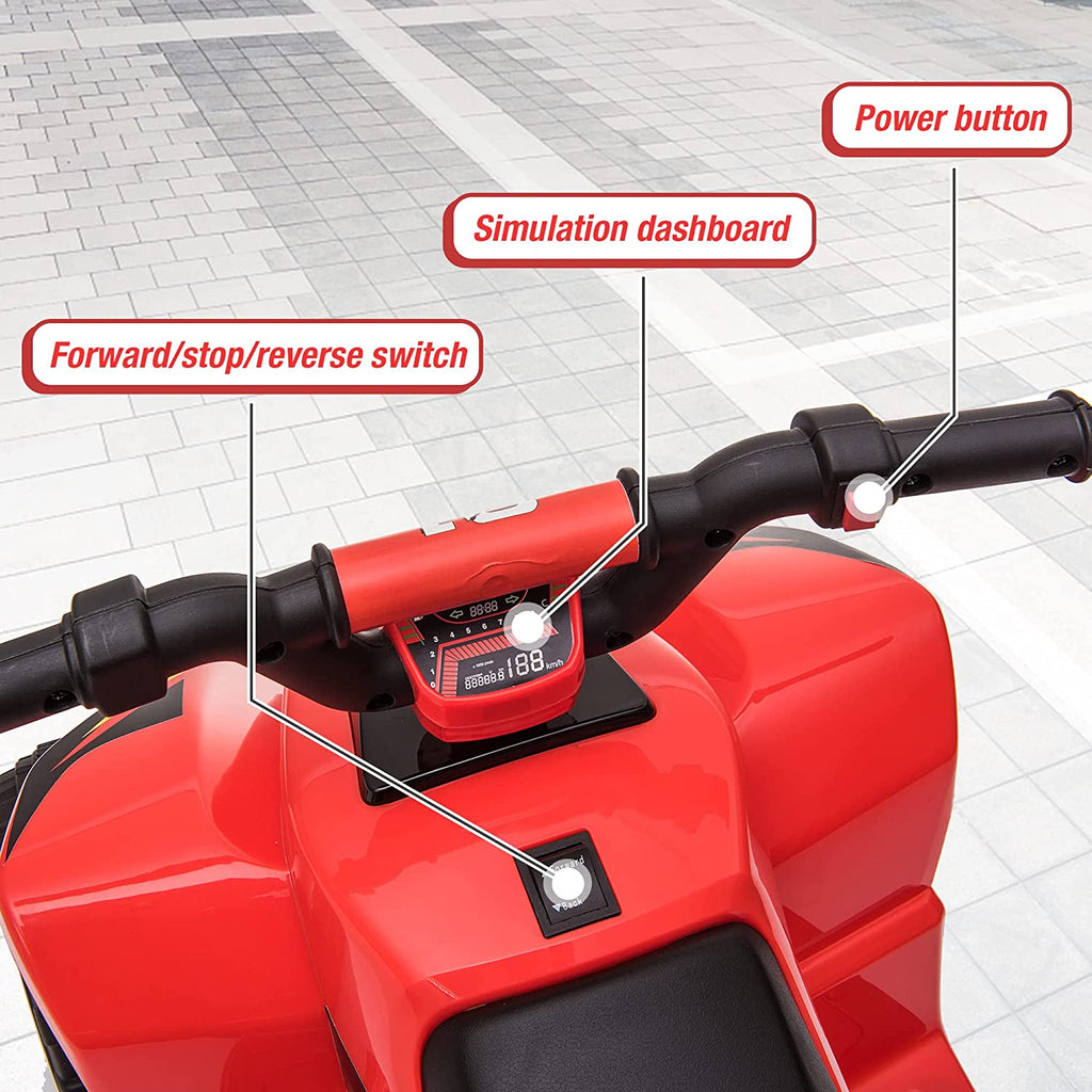 Easy Operation: With Forward/Stop/Reverse switch, easy to operate. Really a great ride on ATV for toddlers or beginners. First, turn on the power button, press the forward/ reverse switch and then control the handle. No need of any other complex operation, your little kids can enjoy the ride.