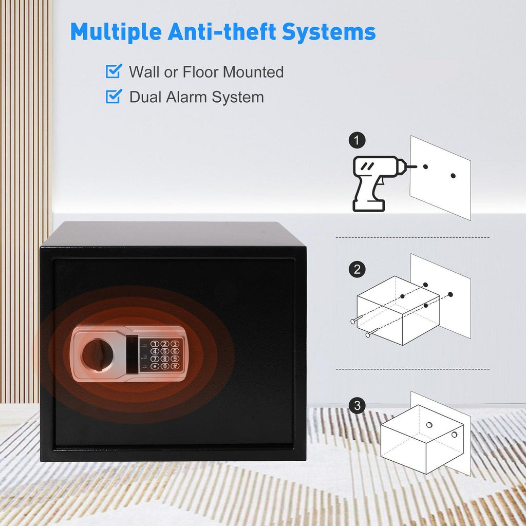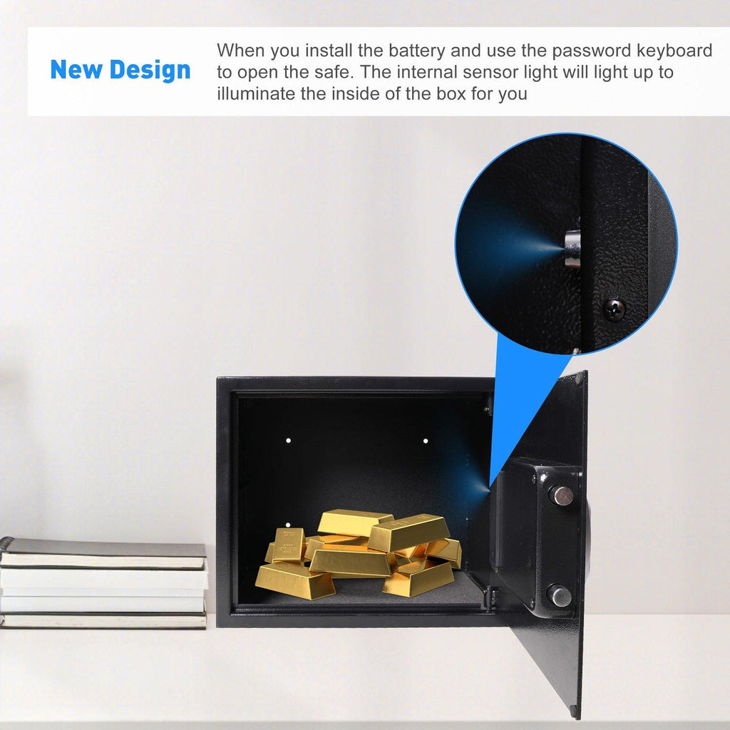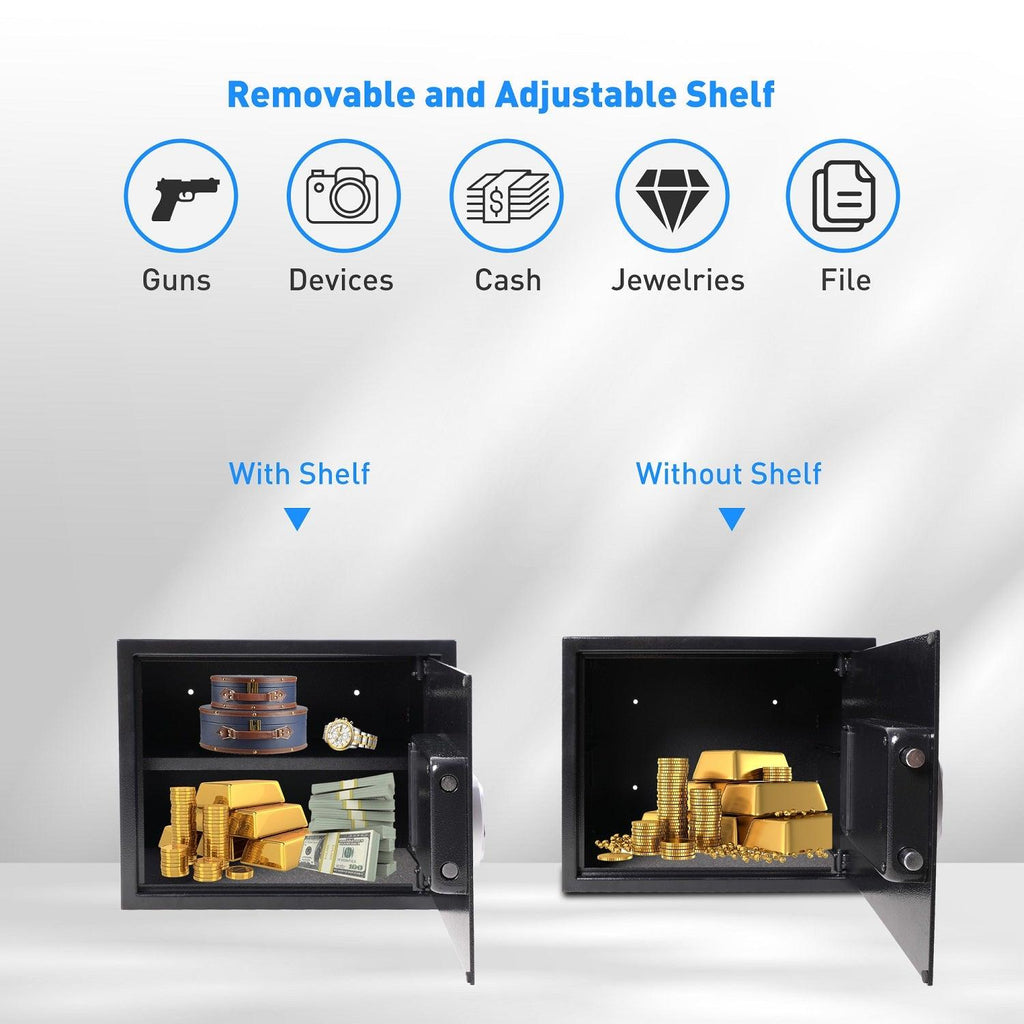 Private Safes: Fireproof safes are made of sturdy cold-rolled steel that is pry-proof, rust-proof and heat-resistant. The fireproof safe is strong enough to prevent children from accidentally touching firearms or medicines and to deter burglars. Three consecutive incorrect code entries will result in a warning beep. You can set the silent mode or turn on the sound.