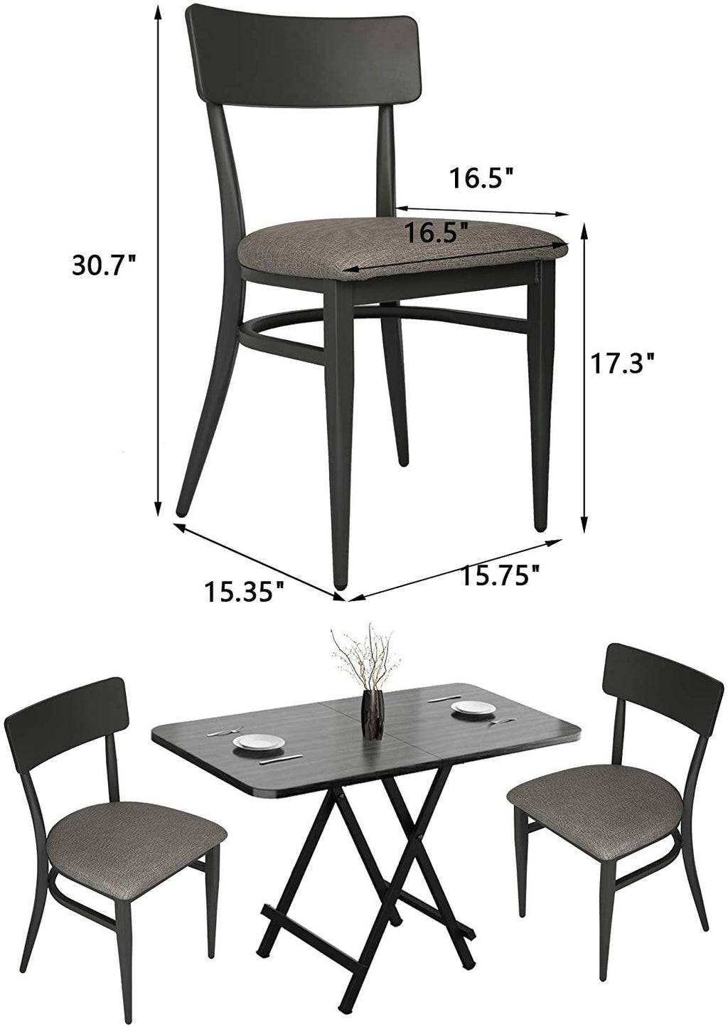 - 🪛Quick-Assembly: The assembly is quick and easy. Which tip is to attach all screws very loosely so it all fits, then tighten. It only takes 2 minutes to finish putting together both 2 chairs. Chair dimension: 15.35"(W) x 15.75"(L) x 30.7"(H).