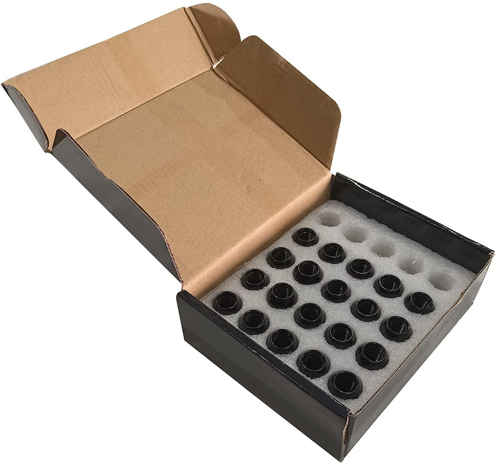 - Wheel nut set: 20 black lug nuts +1 Protective box with shock proof. If you have any questions, please contact us in time,we will provide a professional reply within 24 hours