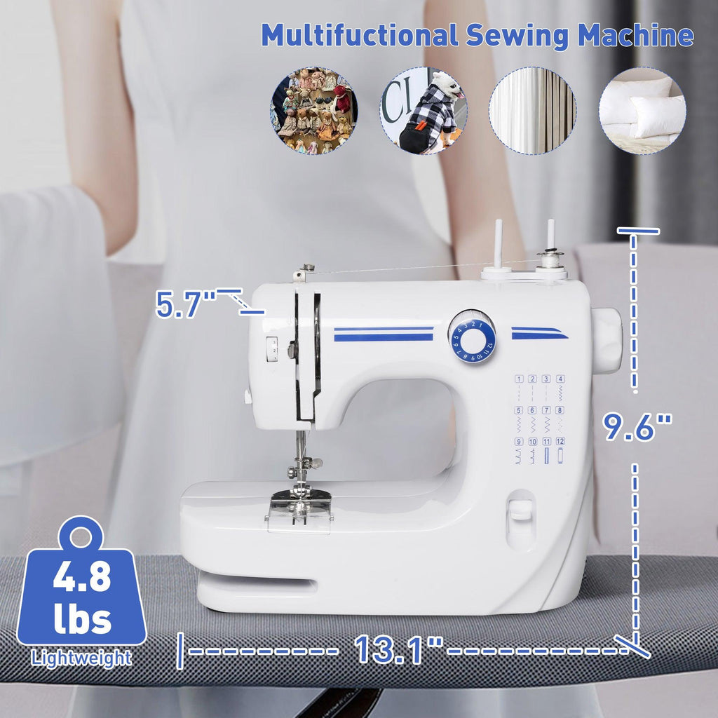 Featured 12 Stitches: This sewing machine has 12 different built-in stitches, including a straight stitch, decorative stitch, buttonhole stitch, and blind hem stitch. You just need to turn the gear to switch the stitch you need to your own fabric. And with backstitch function, it can meet your different sewing needs.