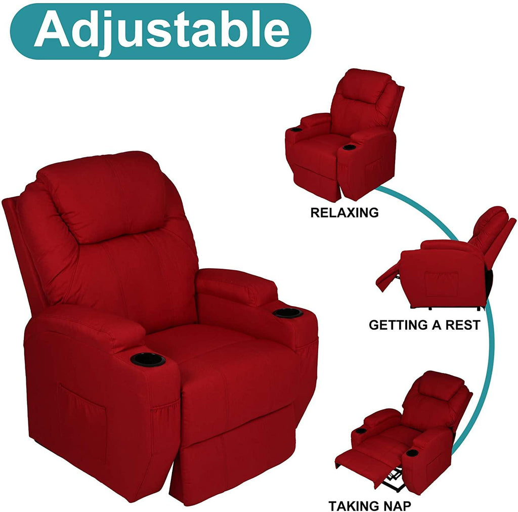 Our Bosonshop red Single Recliner Chair with Massage & Heating offers you a full body massage. It also has a heating function on the lumbar part while massaging, which is helpful to relieve pressure, taking away the tiredness.