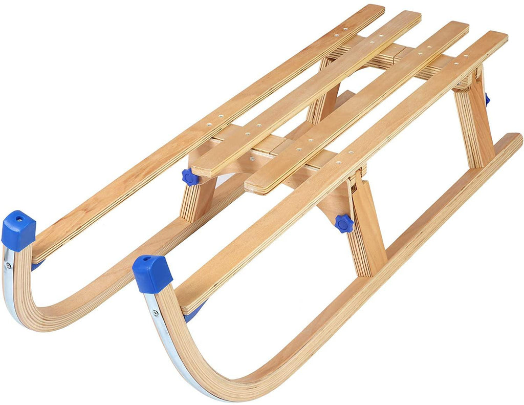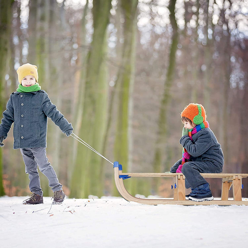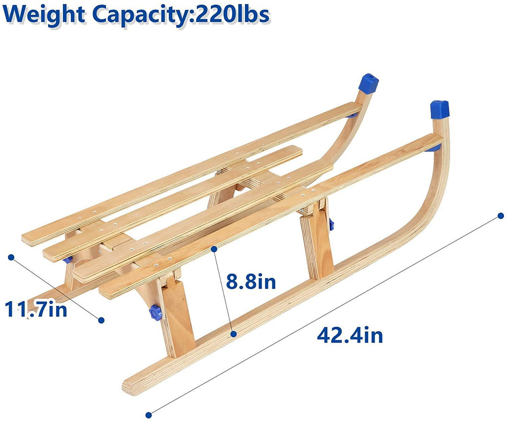 - Sturdy and durable: This snow sled made of solid wooden and high-quality plastic. The wood legs wrapped in plastic and pose no safety risk at all. Used all-steel bolts instead of aluminum.