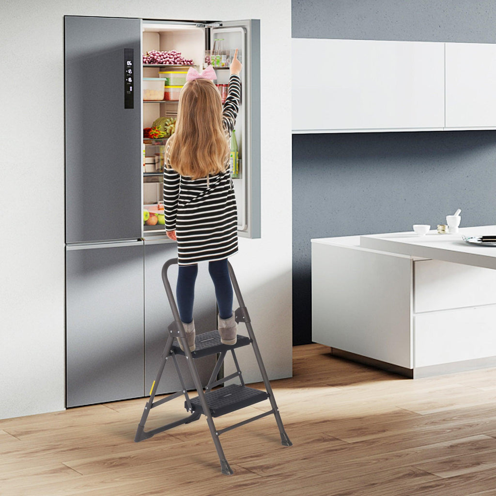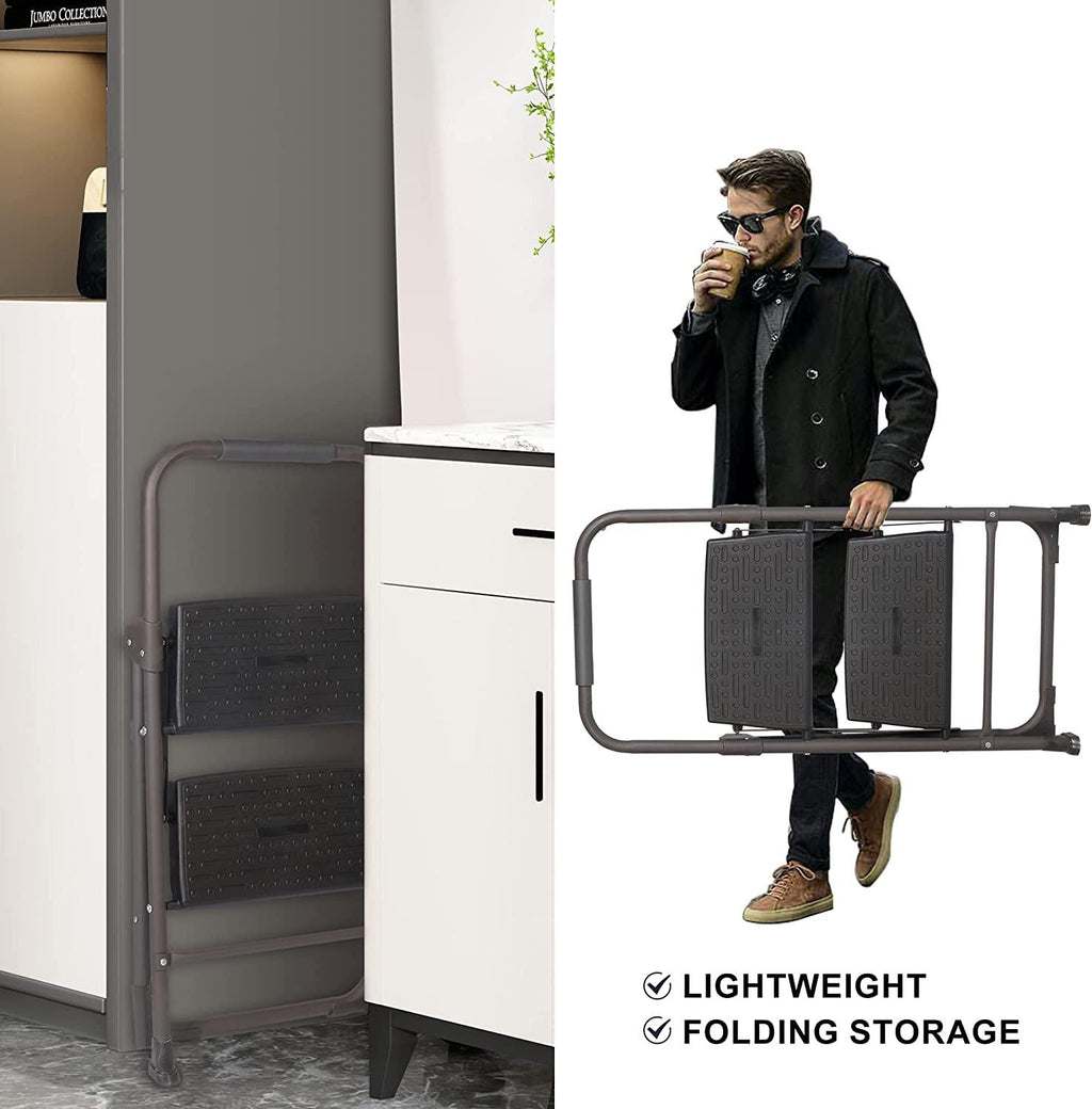Durable: Sturdy kitchen step stool have 4 secure and stable legs, load capacity up to 330 lbs, step stool has a wide anti-slip vinyl plastic black pedal for better grip in order to prevent falls.