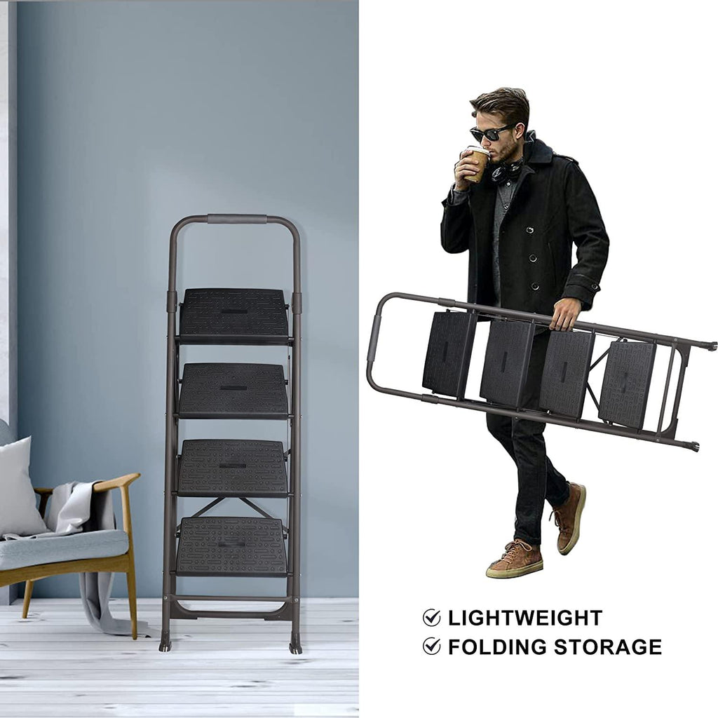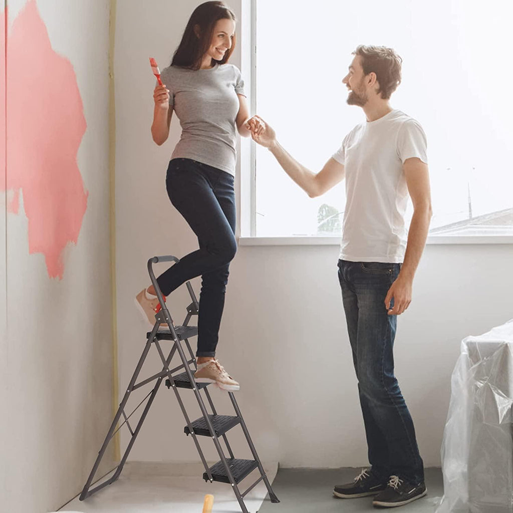 Optimize your reach for a sparkling clean home! Our versatile step ladders are your best bet for tackling those hard-to-reach areas with ease. Designed for easy use and storage, our foldable steel step ladder folds compactly, making it effortlessly storable even in tight spaces. A handy tool for a myriad of tasks in the kitchen, study, bathroom, or garage, this ladder ensures you can effortlessly reach high cabinets to change light bulbs or clean windows. Elevate your comfort and productivity as you conquer household chores with our efficient step ladder!