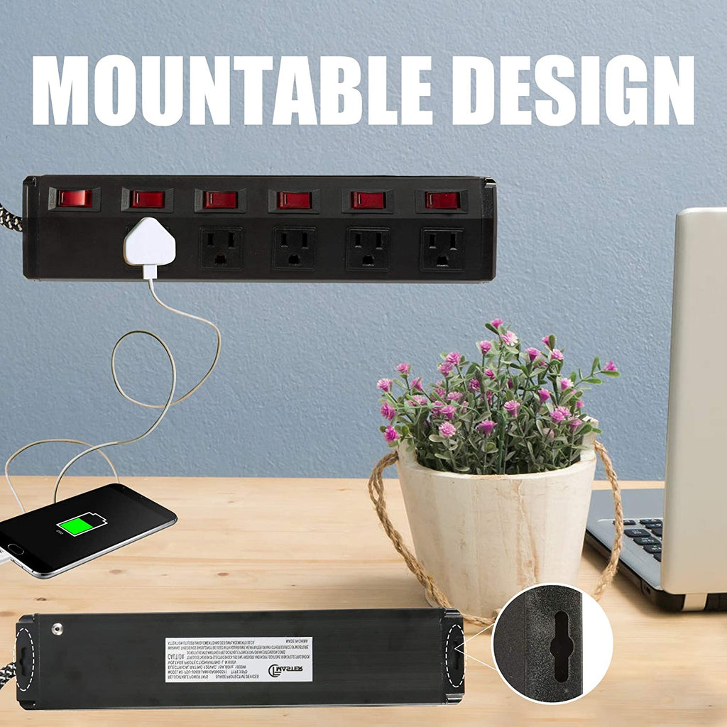 Mountable Design: This black plug strip with mounting holes are help to save more spaces in your room. Perfect for your home, office or workshop.