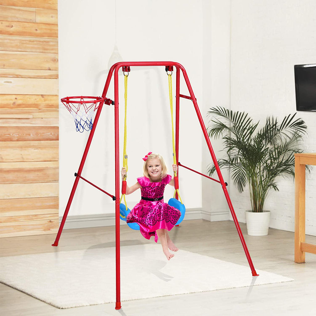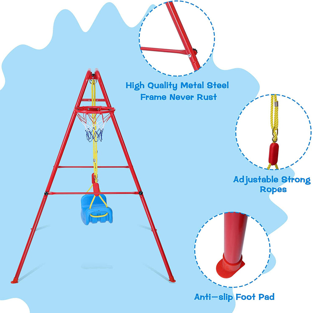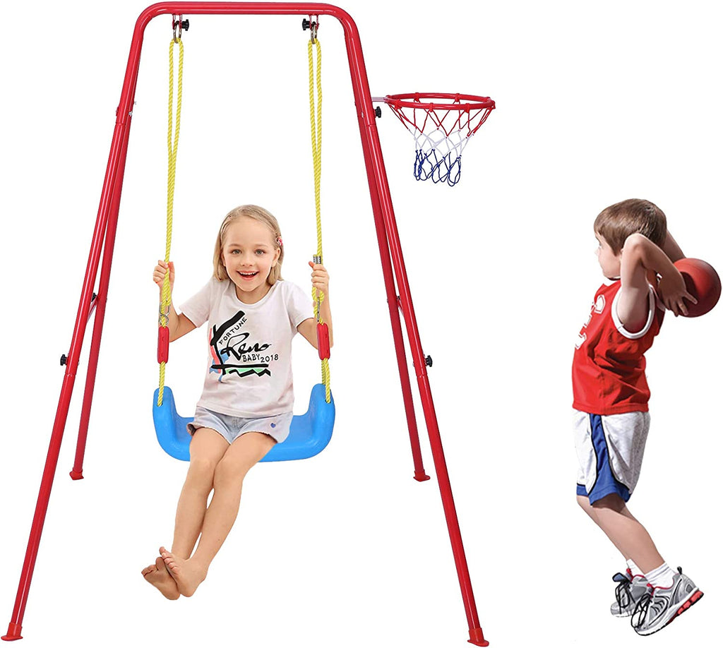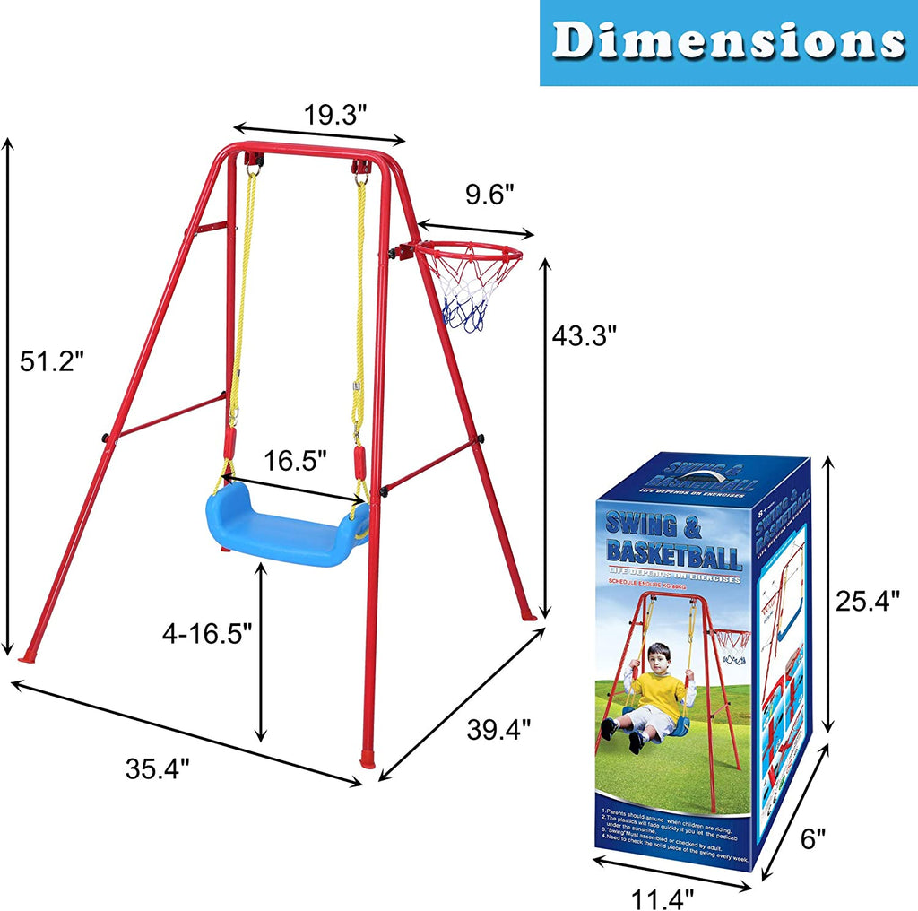 2 in 1 Design: Purchasing this swing set your little can swing and also can play basketball. Each package includes a basketball and a ball pump.