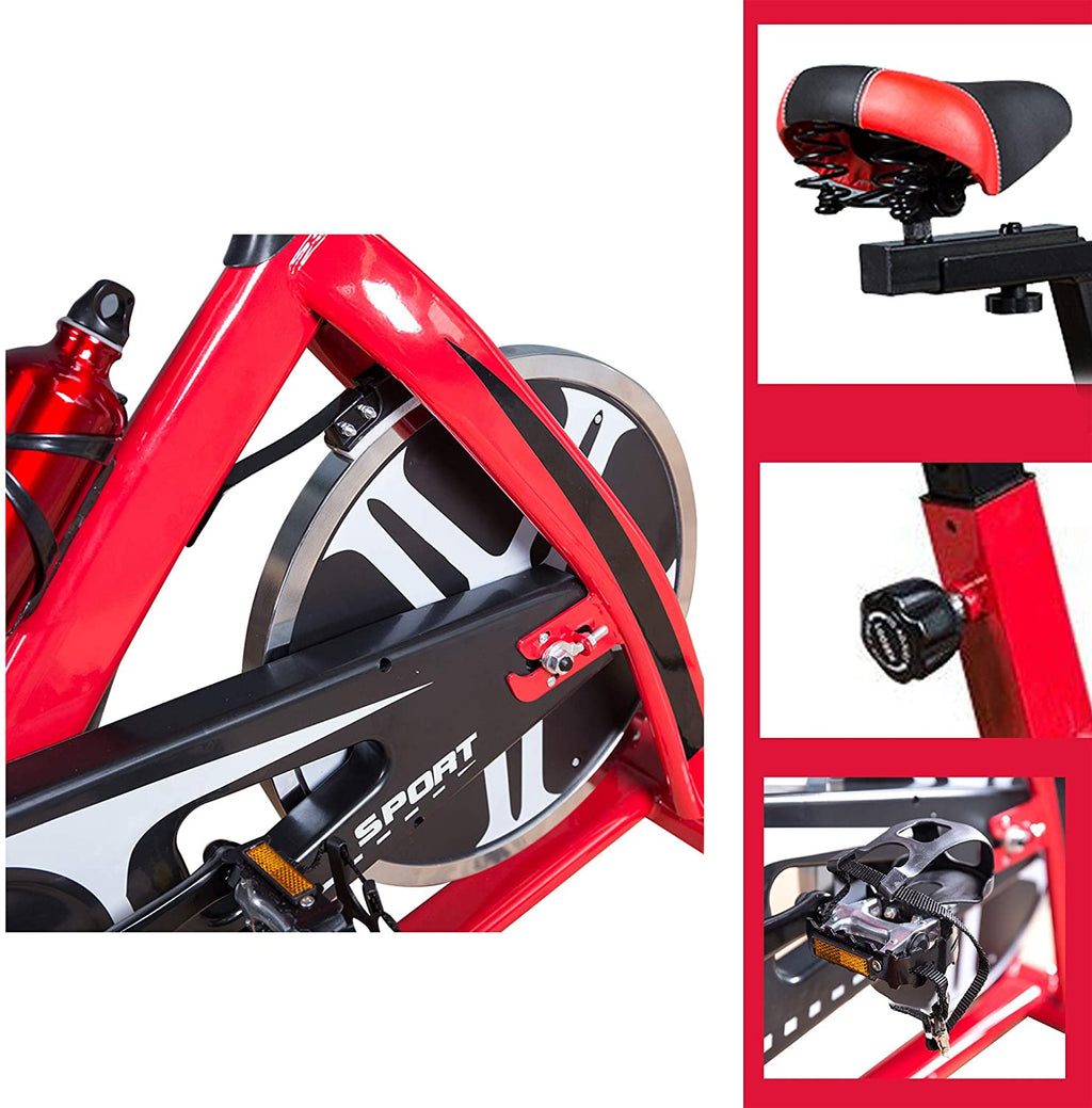 Bosonshop Spinning Bike has a dynamic large fly wheel for a more realistic ride. Safety girder bearing, thick front support tube and load bearing tube, belt storage cover, safer, more durable and quiet. A level adjuster and a high quality sports bottle have been added.