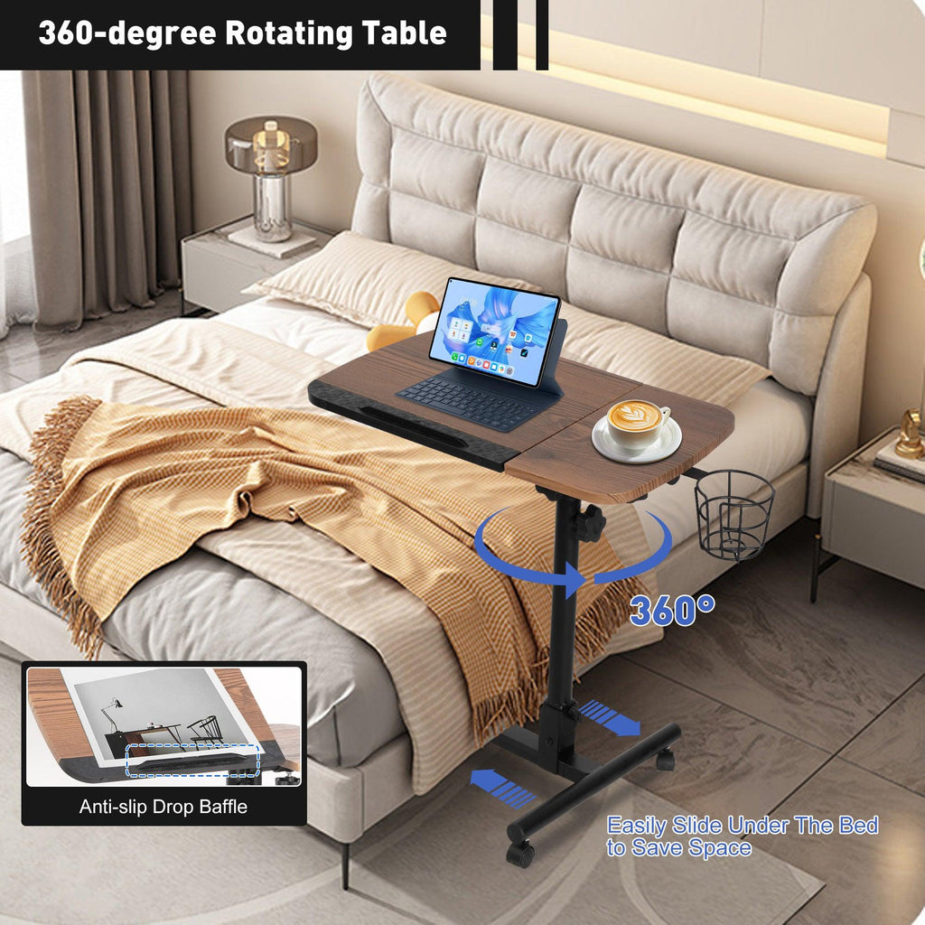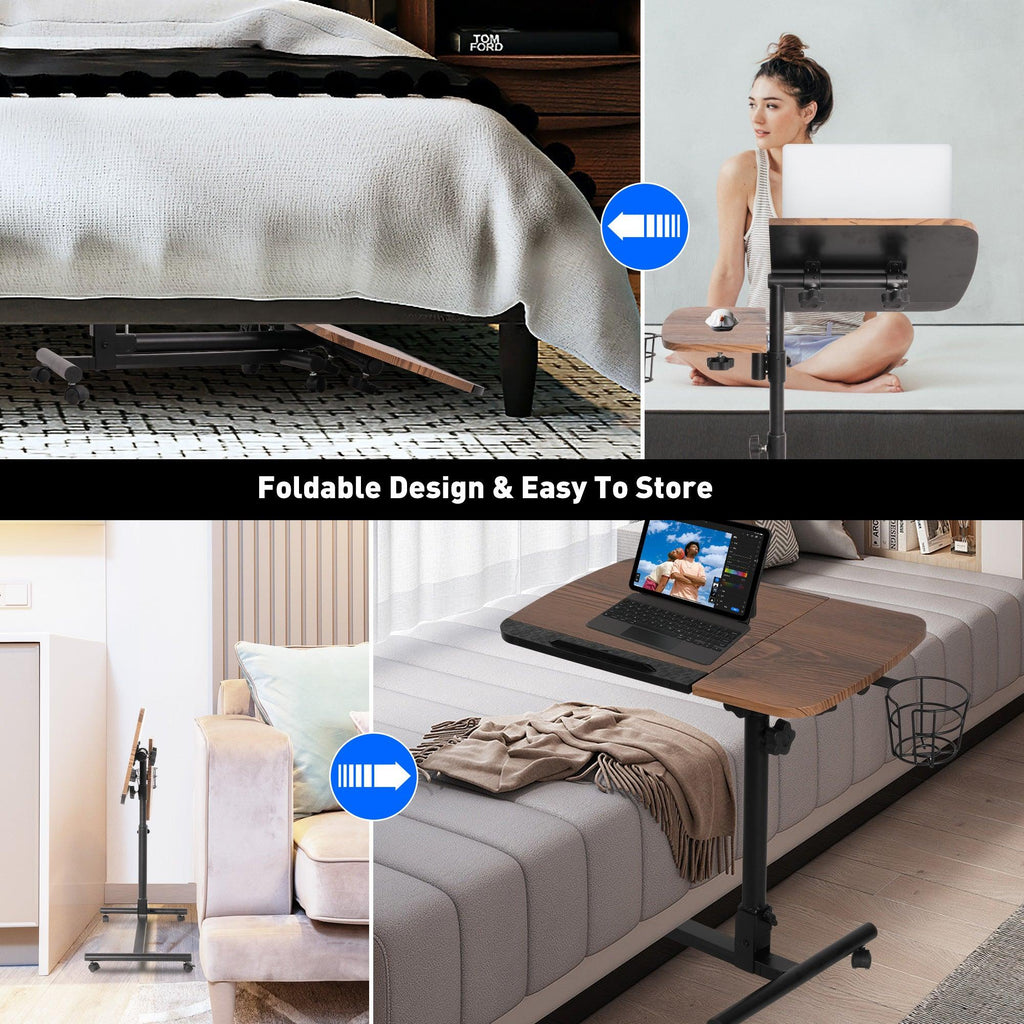 Easy to Fold & Store: This adjustable height rolling desk easily collapses and folds for compact storage. The 360-degree rotation feature, along with its height adjustability, allows for effortless customization. Simply unscrew the screws to reduce the height, making it convenient to tuck away in a corner, under the bed, or sofa and save valuable space.