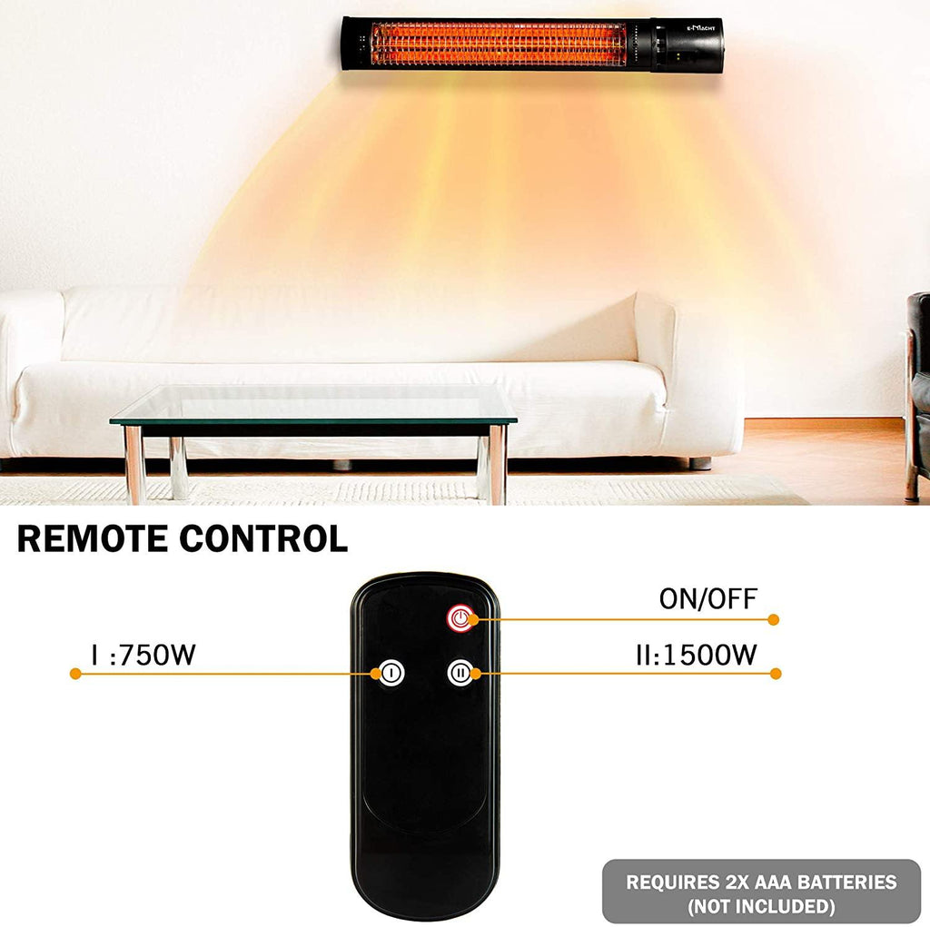 - Remote Control | This wall-mounted space heater can be operated remotely and manually, requires 2 x AAA batteries (not included).