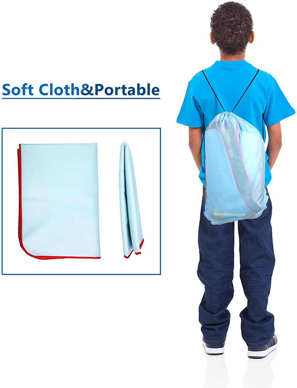 - The mat is made from non-woven fabric and polyester fibers. It’s waterproof on the bottom, and it comes with water brush, stencils, drawstring backpack.