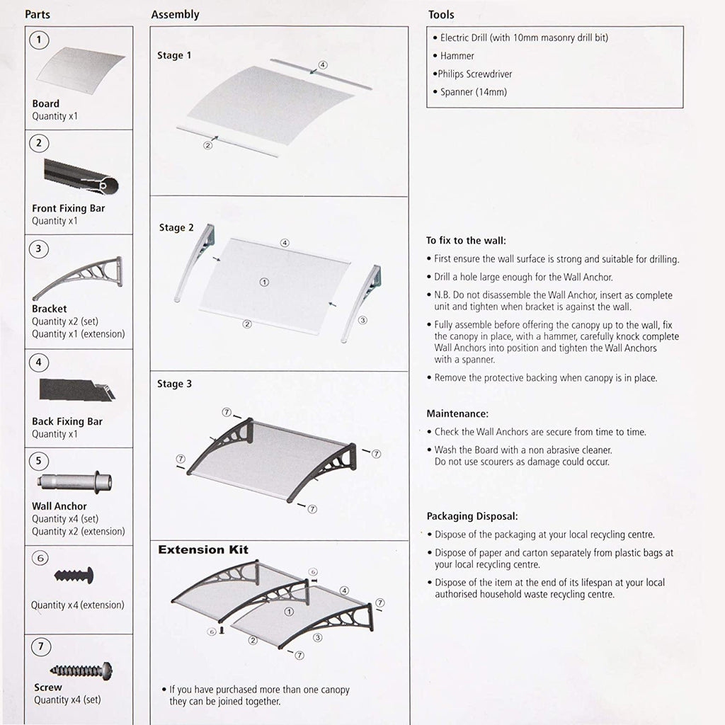 Package Includes: Door Awning *1, Instructions *1