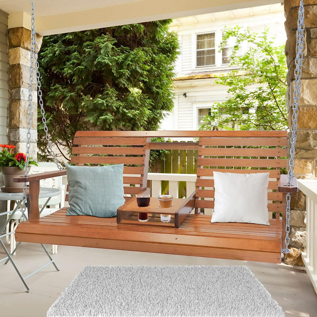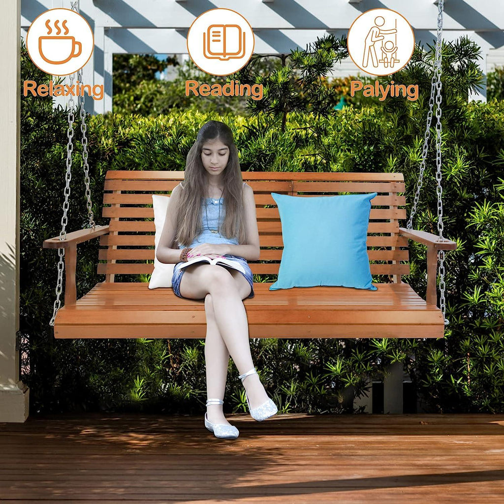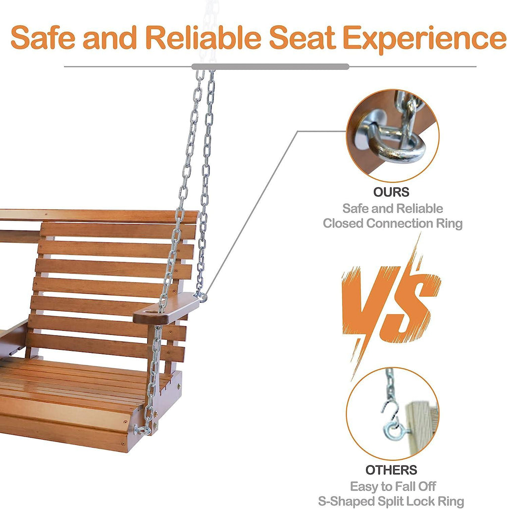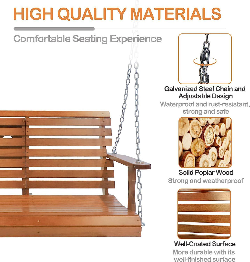 High-quality Solid Material: This hanging porch swing is made of solid poplar wood with PU wood lacquer coating, sturdy and durable. Weather-resistant and not easy to break with aging (but not recommended to be left outdoors for a long time). The sides and ends of each slat are polished with no sharp edges. Cleaning can be done by wiping with a cloth.