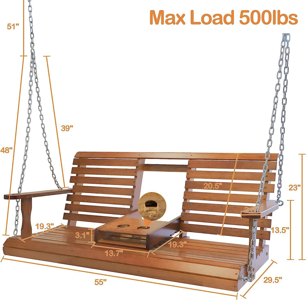Unique & Novel Design: A hidden flip-down console in the middle of the swing chair can hold drinks for you and your partner. You can fold it back into the backrest to save space when not in use. The garden bench can be hung from porch, backyard, garden or tree for a quiet rocking moment with your family.
